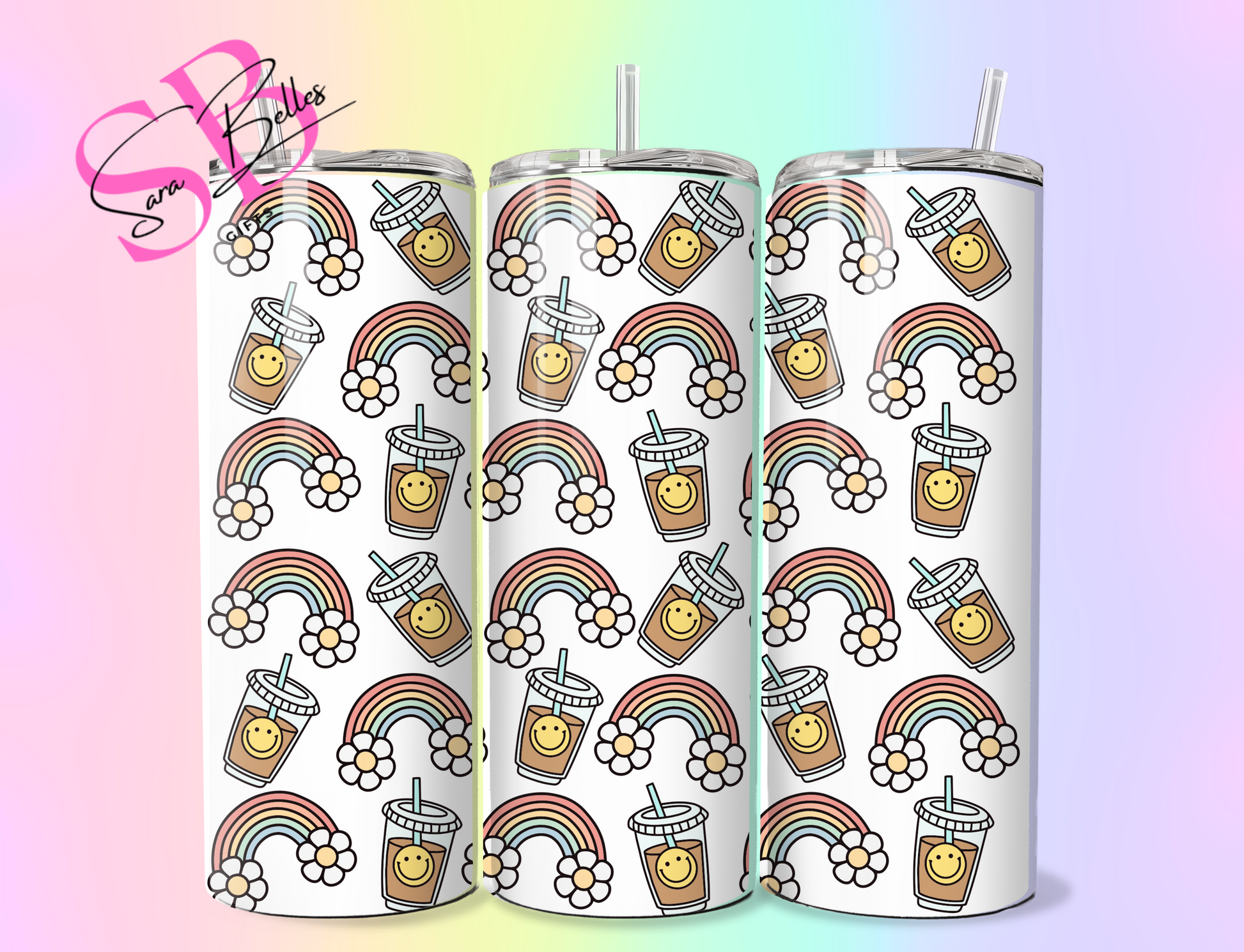Rainbow Iced Coffee 20oz Tumbler – Colourful Café Vibes Stainless Steel Cup with Straw & Lid
